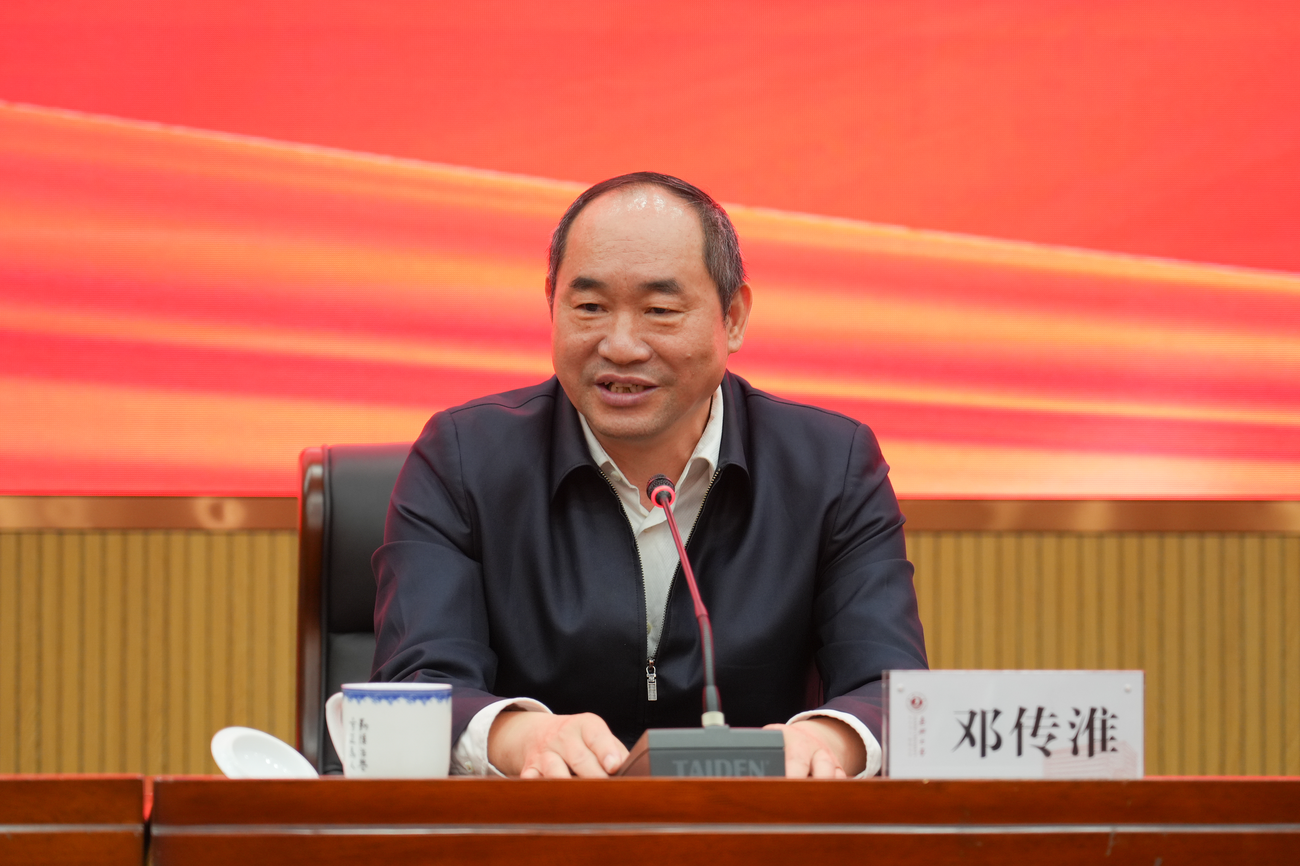 邓传淮以《学习领会习近平总书记教育重要论述 努力办好人民满意的教育》为题,围绕“一个之基、两个大计、三个属性、四个建成、五个重大关系、六大特质、七个第一、八个学会、九个坚持”,深入阐释了习近平总书记教育重要论述的丰富内涵和核心要义,全面解读了教育强国建设的科学内涵和本质要求。他指出,习近平总书记关于教育的重要论述,是习近平新时代中国特色社会主义思想的重要组成部分,是中国特色社会主义教育理论的最新成果,为做好教育工作提供了根本遵循和行动指南。要深刻领会习近平总书记关于教育的重要论述精神,全面贯彻党的教育方针,准确把握立德树人根本任务,大力弘扬教育家精神,把立德树人成效作为检验学校一切工作的根本标准,全力培养德智体美劳全面发展的社会主义建设者和接班人。要发挥高等教育龙头引领作用,以支撑引领中国式现代化为核心功能,统筹推进教育科技人才体制机制一体改革,为建设中国特色社会主义教育强国贡献力量。